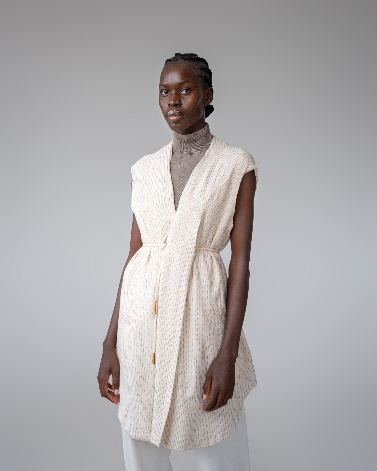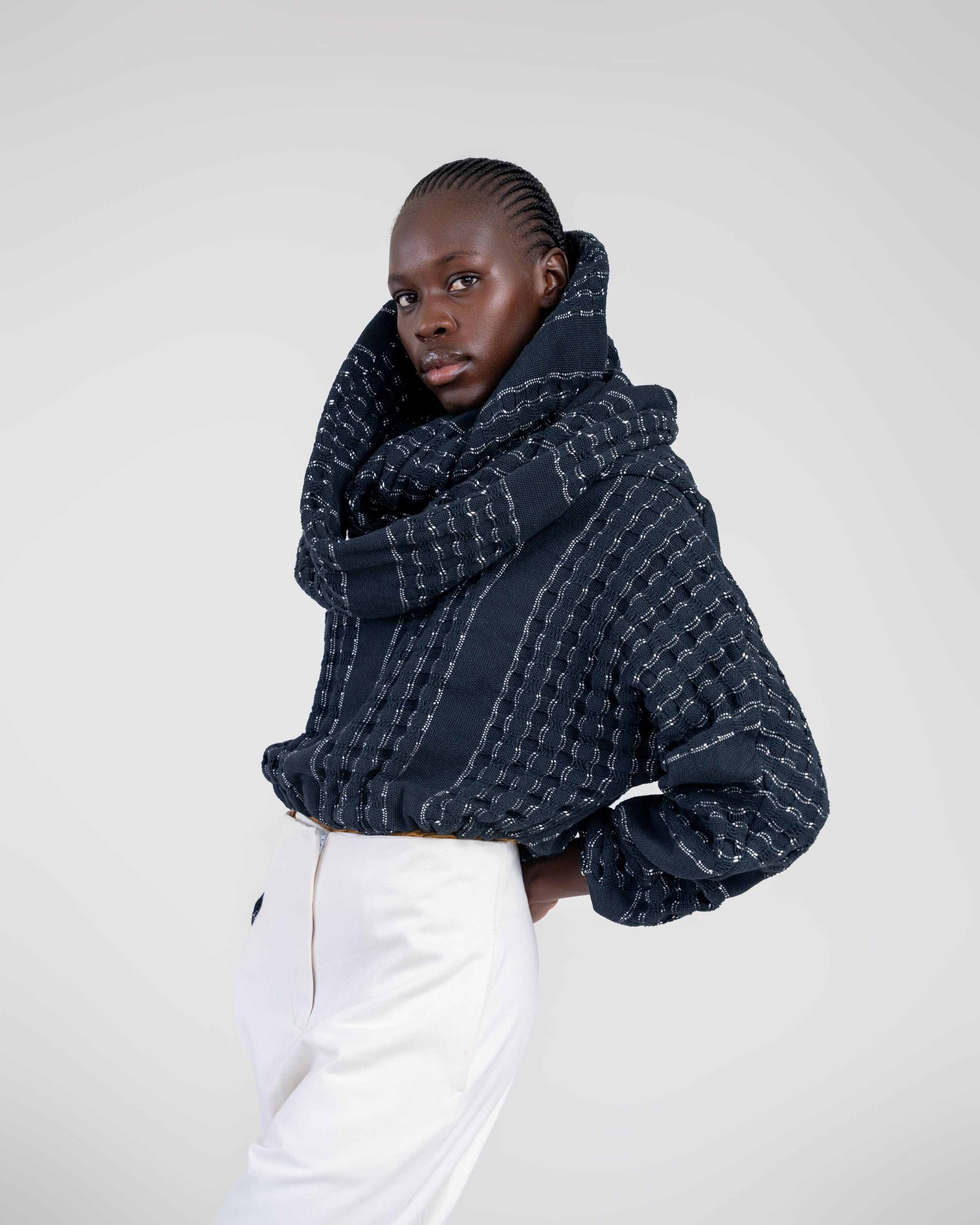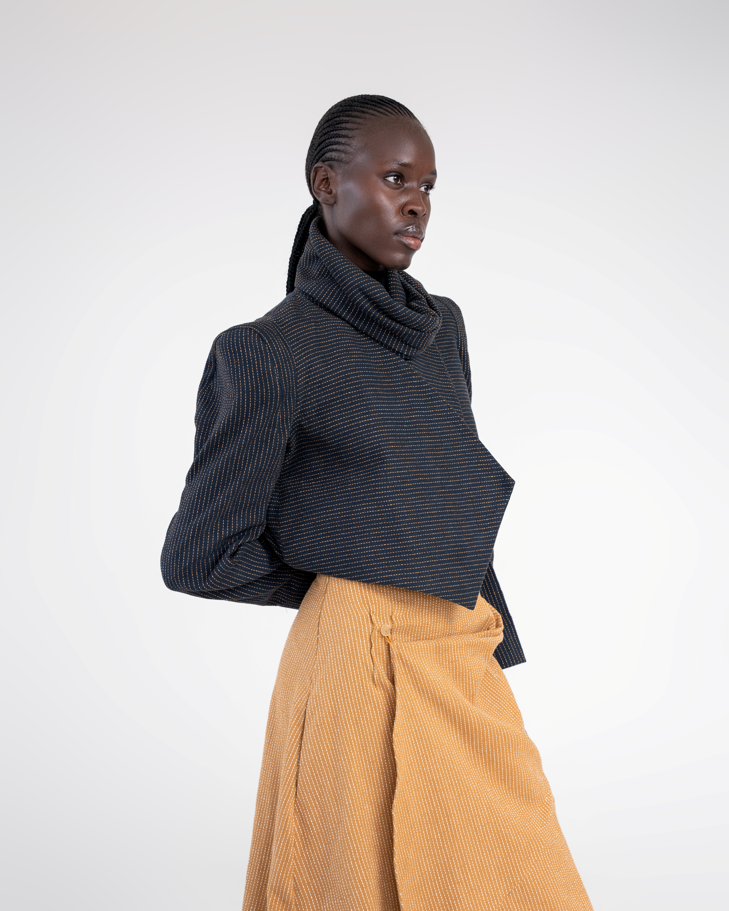 Our FW collection is a study in East African modernism, an exploration of heritage techniques reimagined for a contemporary world. We work with cotton handloom, crochet, beadwork, leatherwork, and other artisan crafts, pushing each material into new forms through thoughtful manipulation and clean, architectural silhouettes.