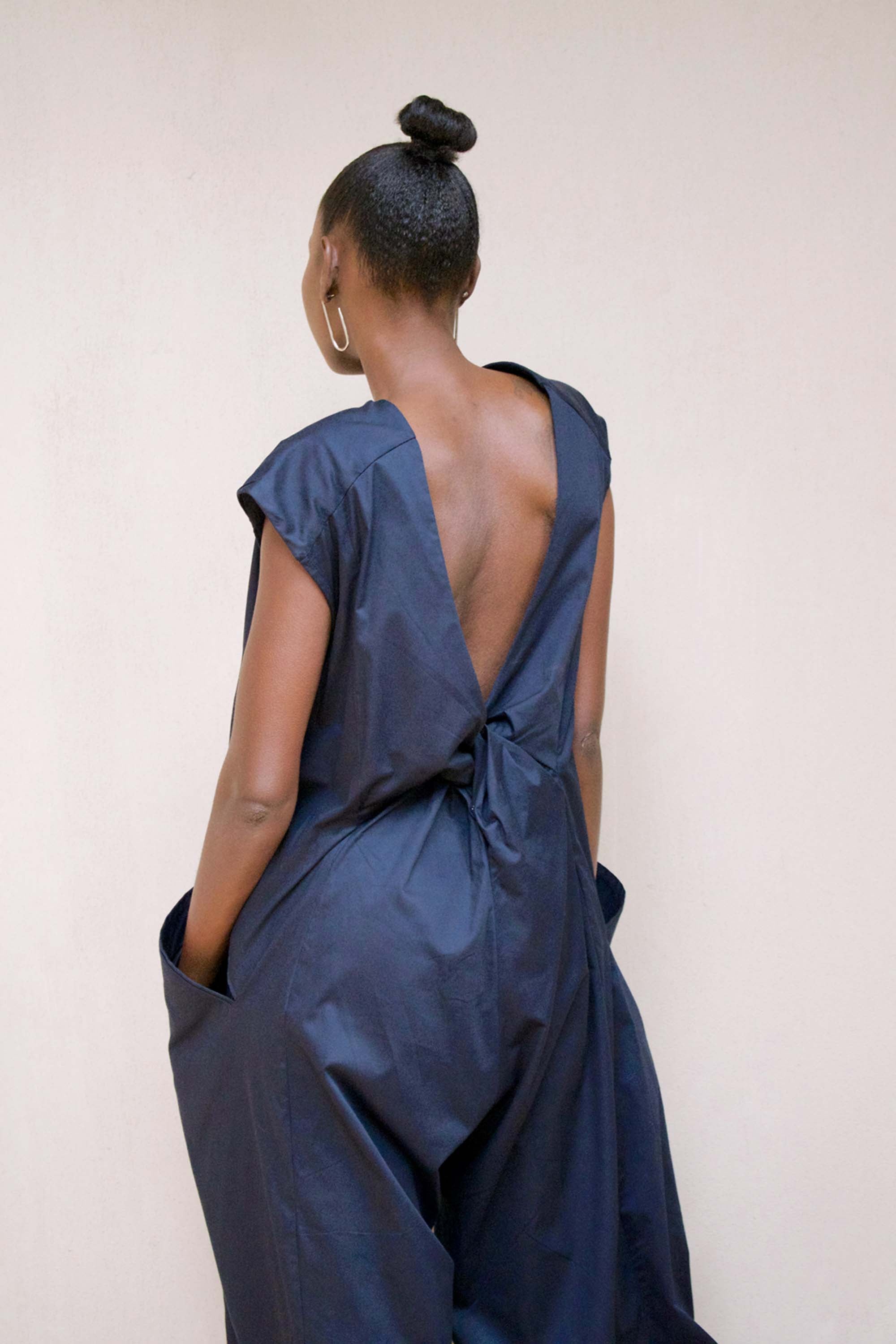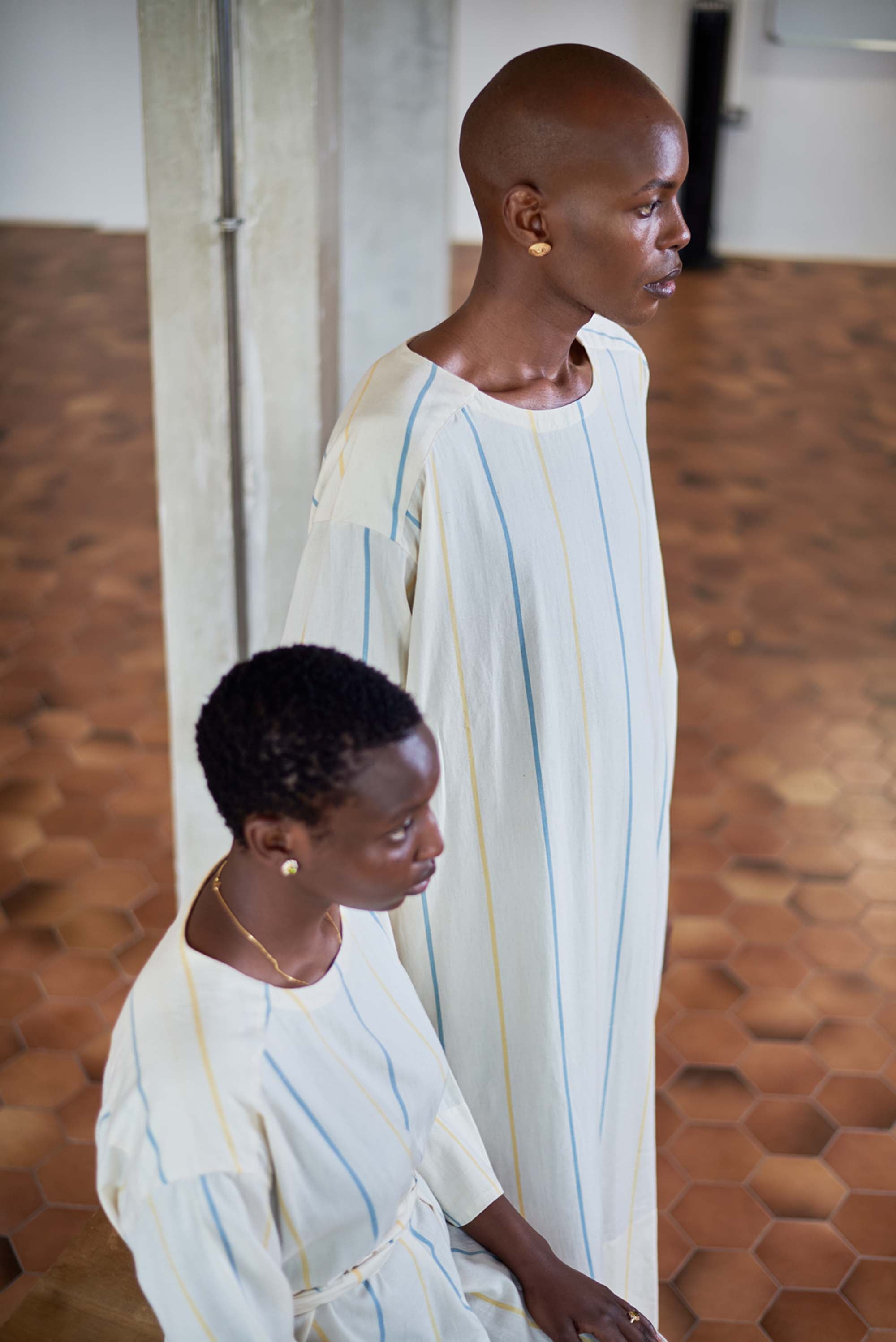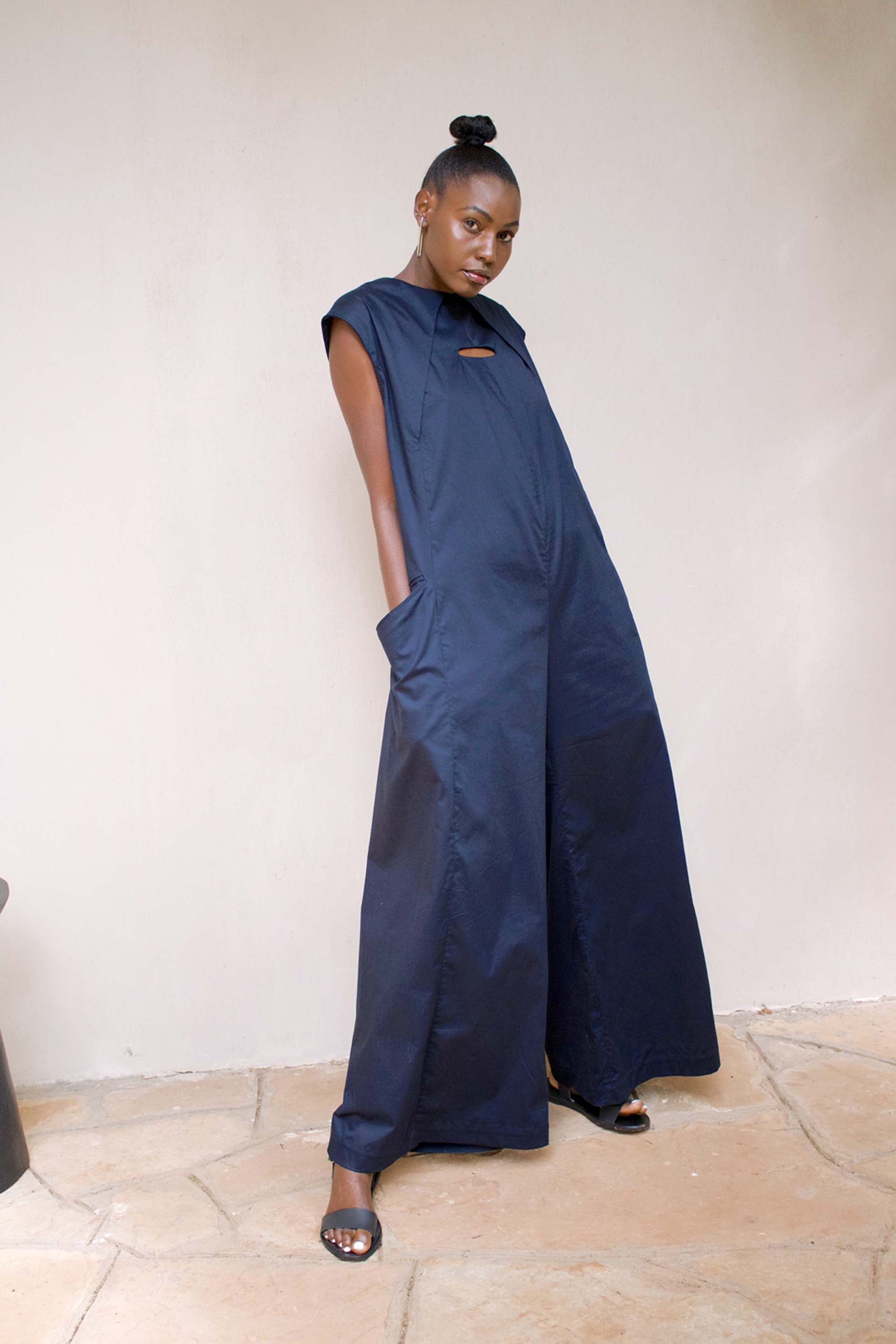 Our SS23 collection "Versatile Essentials" focuses on timeless silhouettes with architectural details. Featuring pieces in vibrant yellows and deep navy blues, these pieces blend structural elements with fluid draping, celebrating the duality of strength and softness in African design.